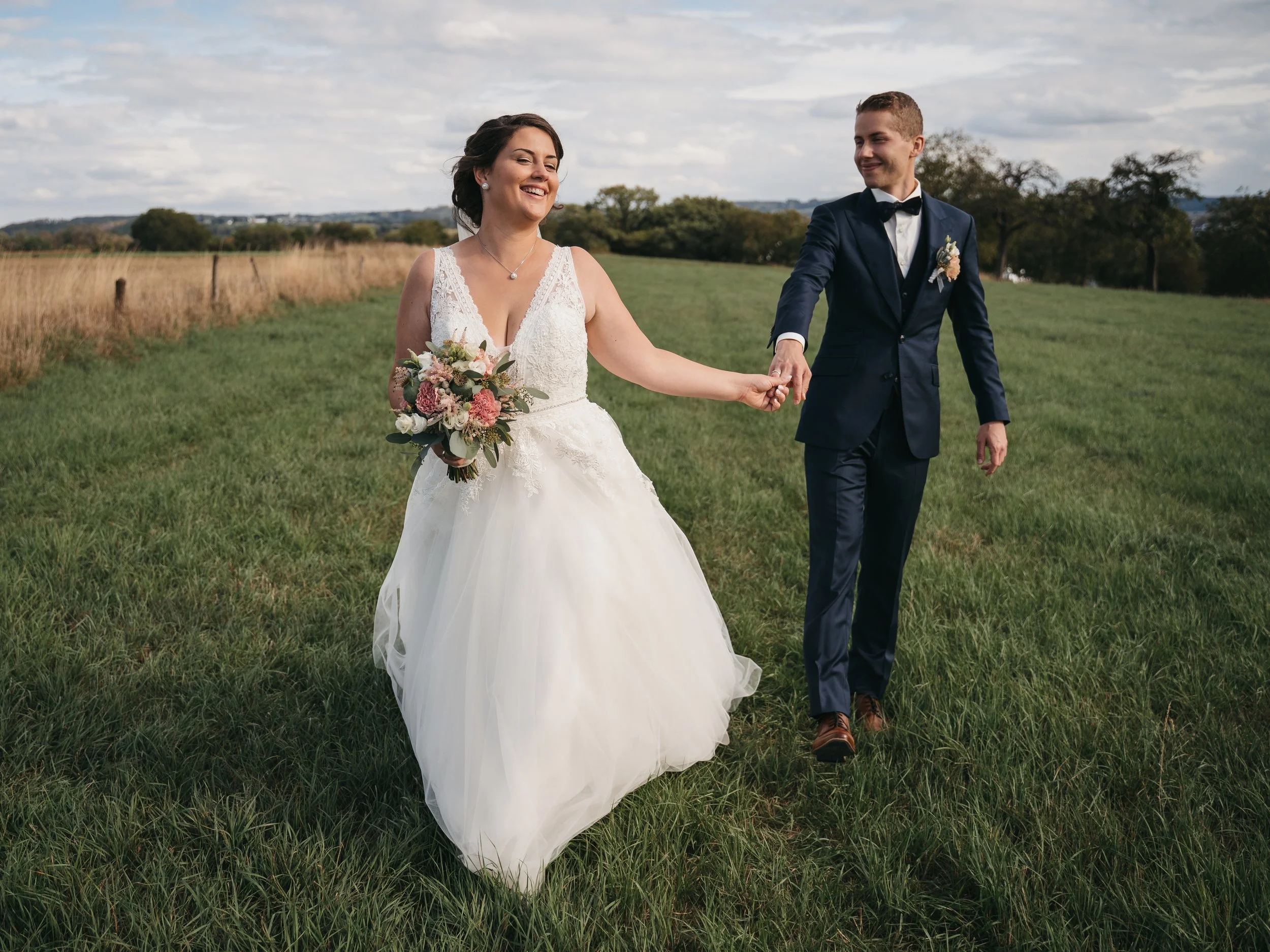 Glaub mir du bist damit nicht allein. Die Wenigsten treten sofort selbstbewusst vor die Kamera und posen wie professionelle Models. Das ist ganz normal und überhaupt kein Problem. Ganz wichtig für mich ist eine Vetrauensbasis, die wir schon im persönlichen Vorgespräch aufbauen können. Während des Hochzeitsshootings verlange ich keine strikten Posen von dir, sondern fange natürliche Momente ein. Ich bringe euch in bewegte Situationen z.B. einen kleinen Spaziergang - so entstehen authentische und natürliche Aufnahmen, ohne dass Aufregung vor der Kamera entsteht. Das macht dann sogar richtig Spaß!